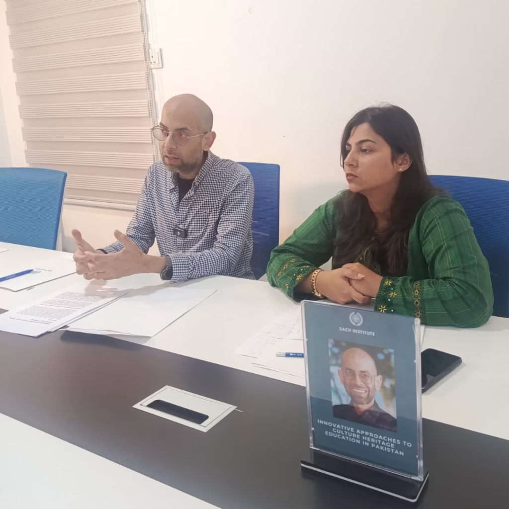 SACH Institute hosted an engaging academic session led by SACH Scholar Dr. Iqbal Akhtar on Negotiating Pluralism: Innovative Approaches to Cultural Heritage Education in Pakistan. The discussion drew a strong presence of scholars, researchers, and enthusiastic young students, highlighting a shared commitment to pluralism and cultural understanding.